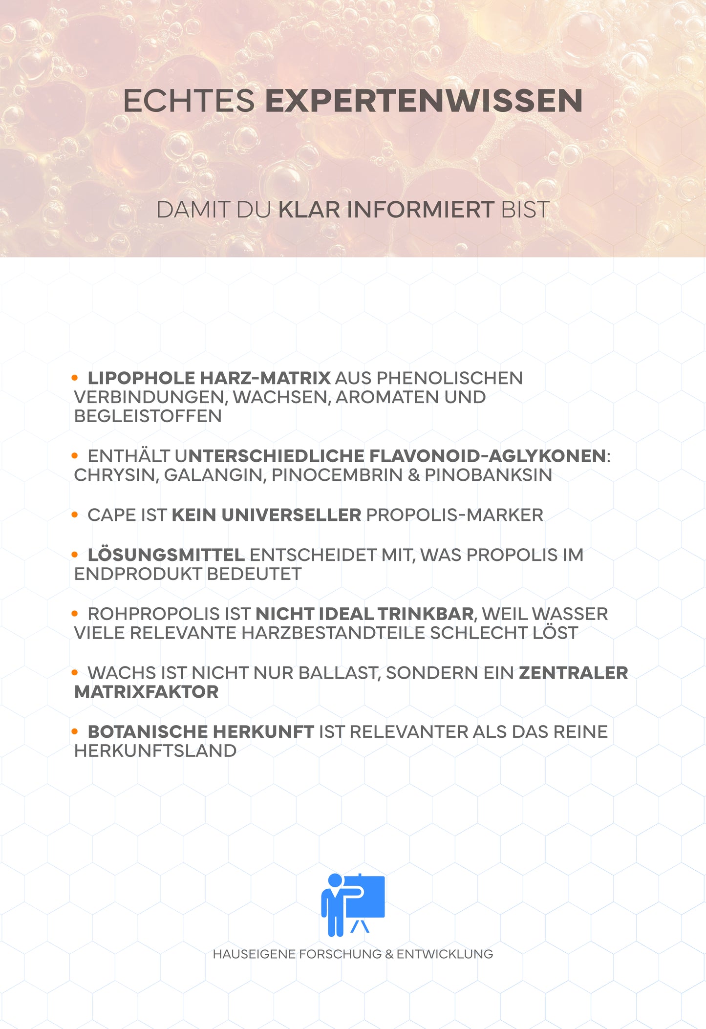 Weil Propolis so komplex ist, sind Laborwerte der eigentliche "Expertentrick" für Vertrauen. Wenn konkret geprüft wird, wird aus Naturromantik eine überprüfbare Qualität.