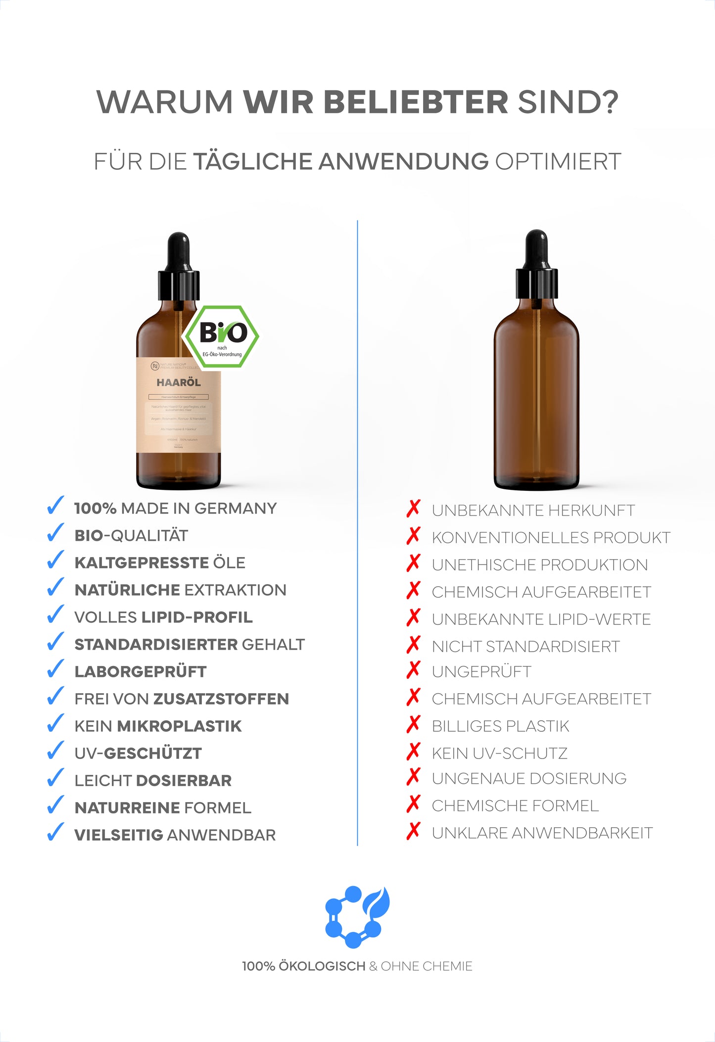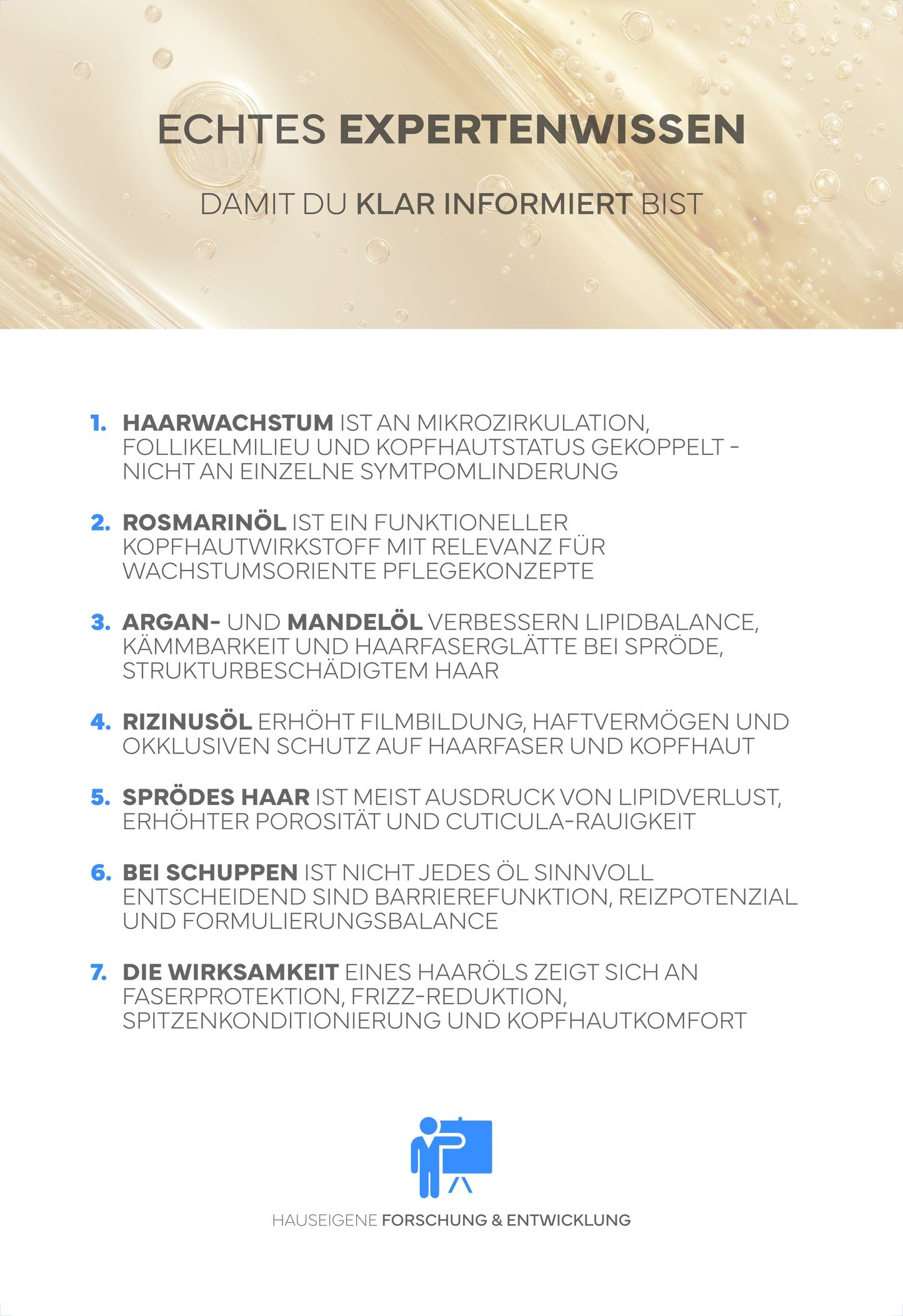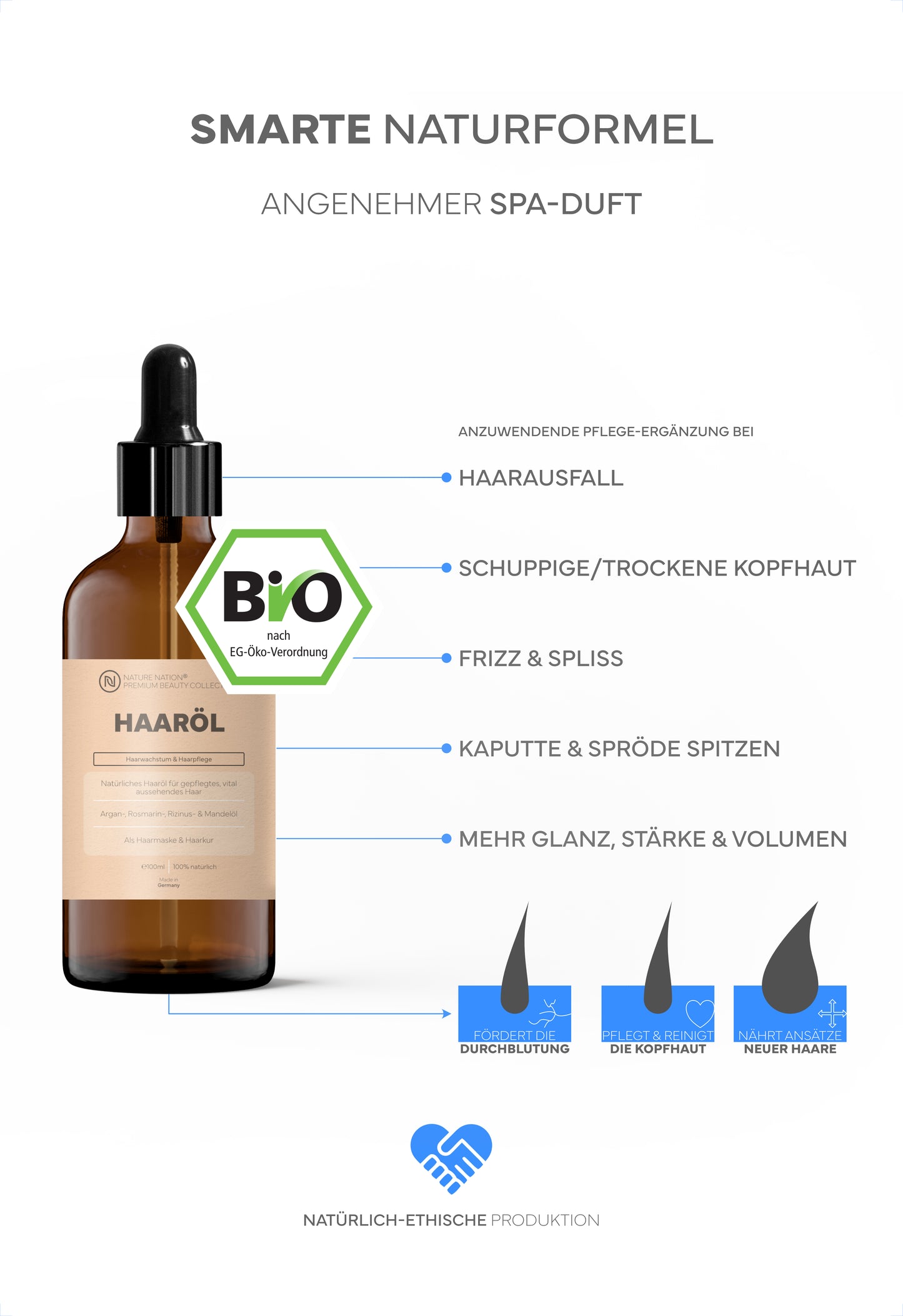 Natürliches Haaröl - Fördert Haarwachstum & pflegt bei Haarausfall, mit Arganöl, Rizinusöl, Mandelöl, Rosmarinöl
